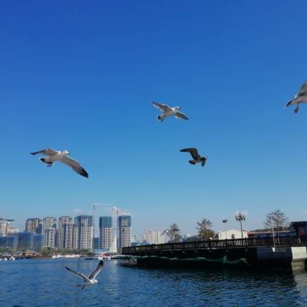 其实猫空也在这个建筑群里,你可以从猫空出来之后逛一逛,会有一条小街,有美食什么,还可以坐船,坐船是花钱的,好像是十块还是二十记不太清了😂,在这里拍拍照还是很美丽的~每次有朋友来大连,我都会带他们来东港,因为真心觉得东港美。
