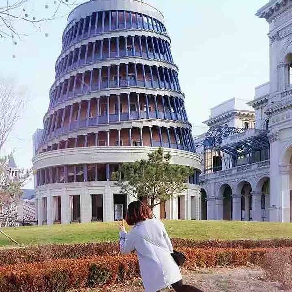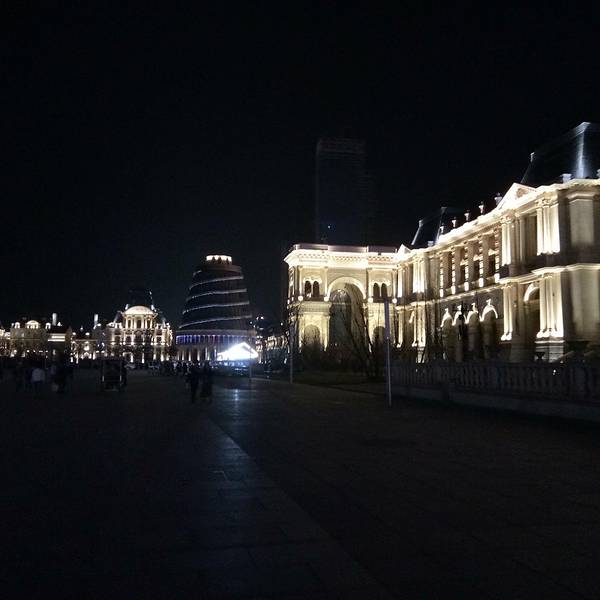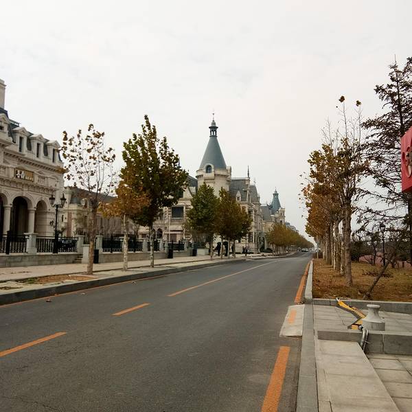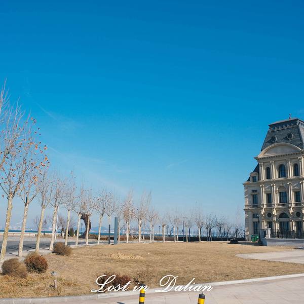 经过了国际会议中心再往前行,首先看到一个巨辽阔的广场,身后是一排欧式建筑,游玩方向大致就是向着这一排建筑走,在这里游走了两个小时,没见到几个人,开始的时候并不知道这些建筑是什么作用的,心中还在猜测这不会是别墅出售吧?每一栋建筑都很美,再加上蔚蓝的天空,仿佛这里一座天空之城,枯树在海风的吹拂下齐刷刷地晃荡着身姿,还有在海上飞翔的空灵的海鸥,于是很好的把自己的心交给它们掌握,东方水城一个很适合消散下午时光的地方。