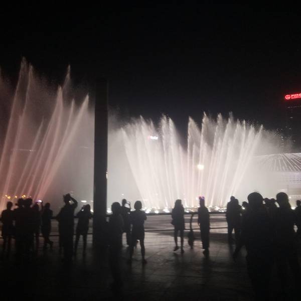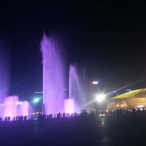 这个音乐喷泉真是灰常灰常美啊!很值得看的。还有,去之前最好看一下东港音乐喷泉的微博,它喷不喷会在微博上说的,因为它喷不喷不一定,看心情😂,我也是去东港去了好多次才赶上一次喷了。 (从东港地铁站上来,有一个商场,可以去里面坐一坐吃个饭,东港周围就这一个商场,商场有免费的wifi,吃饭的店家也很多,上次去那吃了一个铜火锅,挺好吃的~) 展开