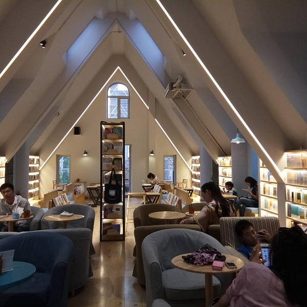 营业时间:10:00到23:00。 相比渔人码头那家猫空,我更喜欢东方水城这家!觉得它超美~一楼很文艺风,可以写写明信片,喝东西,挑选小礼物,逗逗猫~ 我觉得这个猫空最有特色的地方除了它外在的建筑风格,还因为它有二楼。二楼则是看书的地方,三角式的顶棚非常招人喜欢~
