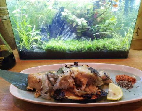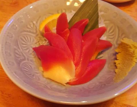 - 刺身也很新鲜,切的厚度适中,口感很好。小店还有一只大蜥蜴,有意思。他家的煎三文鱼头也很不错,香而不腻
