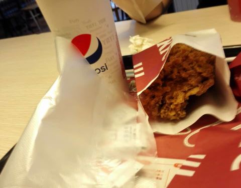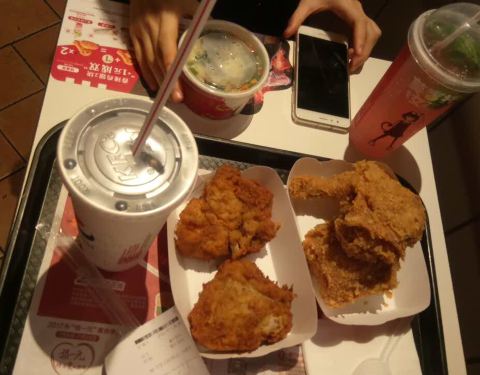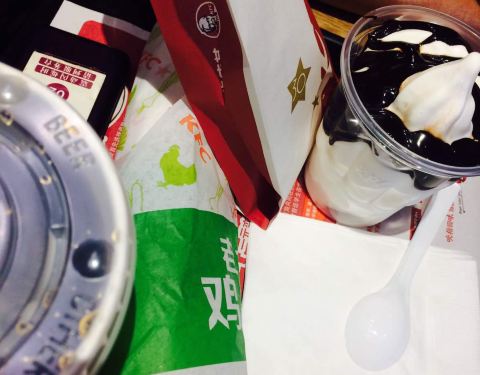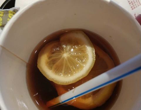 中午没吃饭,饿晕了。还好来的时候人少不用排太久队,套餐挺划算的,柠檬红茶好喝,就是有点太甜了。