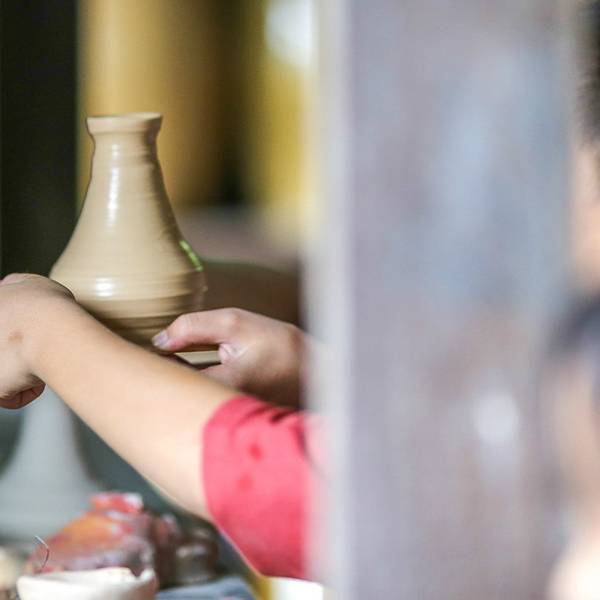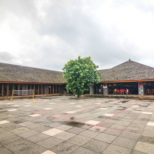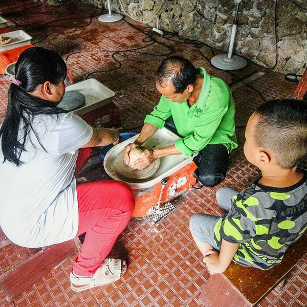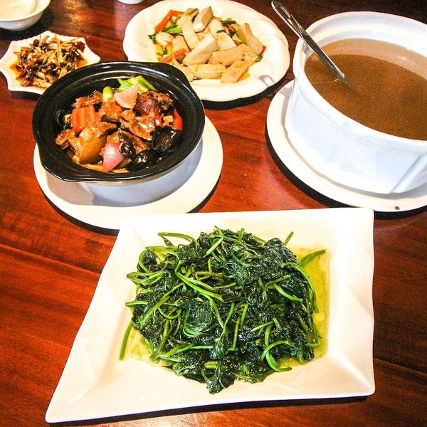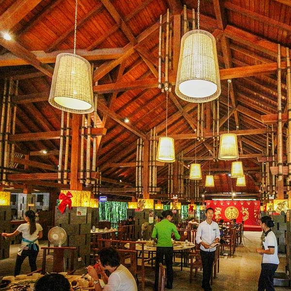 转眼已到中午,寻思去哪里吃午饭,想到了开心农场。开心农场的开发公司与亚龙湾人间天堂鸟巢度假村(即热带天堂森林公园)是同一家,上个月去浙江出差也刚好在他们的安吉大年初一风景小镇住了一晚,这都是令我印象深刻的匠心之作。想到开心农场正好顺路,那就去他们家吃一顿午餐农家乐。顺着导航,车行20分钟左右就到了火山口公园,开心农场的位置在火山口公园左边的村路进去再走400米左右,是一个名副其实的农场。开心农场大致分为三个区域,开心餐厅、欢乐屋手工作坊和酒店区域。由于酒店区域不对外开放,这趟我们也没看着。开心农场就地取材,园林景观和建筑用的都是火山石。据传在秦汉时期,火山周边的村民就已用火山石磊墙筑屋,遮风避雨,这种建筑一直沿用至今。穿过园中曲径,来到餐厅。餐厅门口有个小广场,可以打羽毛球。一旁还有秋千,供孩子玩耍。餐厅虽然顶上有瓦,但是主体建筑是木构的,支撑柱也是火山石。环境还不错。点好菜后,我一人又在农场里溜达,来到了欢乐屋手工作坊。这里的设施就更有儿童趣味了。孩子们在秋千上玩得乐此不疲。手工作坊里边正好有师傅在教孩子们做陶艺。一个完工的陶瓶新鲜出品。孩子小心翼翼地端着,生怕这件亲手打造的工艺品掉到地上。园中的景观是颇有热带风情的,想必这里的酒店也很令人期待吧,但我只好下回再来了。回到餐厅,菜已经端上来了。我们点了一份农家小黄牛。本来我想点石山羊肉的,因为这是火山口最著名的美食,但是有学妹嫌羊肉太膻,只好迁就,反正小黄牛也不错。再来一盘农家黑豆腐,用黑豆磨成的豆腐,也是火山口的特色美食。炒一盘虾酱地瓜叶。再来一锅野生菌汤,完美。最后算下来,人均40元左右,价格还算适中。