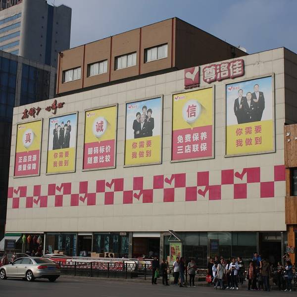 【位置】鞍山火车站斜对面,鞍山大厦附近【交通】从火车站出站后沿左走大约200过马路即是,此外可以乘坐2路50路在鞍山大厦下车即是【特色】这里是鞍山市充值公交卡的地方,可以说是唯一的一个地方,而且公交公司与商场还经常搞活动!【介绍】尊洛佳一共六层,原来在我的记忆中这只是一家很大的鞋店,但是后来我发现我的理解有问题,负一层是运动鞋,这里没有什么大品牌的运动鞋,山寨的不少,但是价格都挺便宜的,质量也不差!一层以男鞋为主,曾经在这里买过一双皮鞋,价格还是比价便宜的,但是感觉质量不怎么地。二层以女鞋为主,鞋的样式很多,但是一般没有女朋友比较喜欢的!三四五层比较乱,在这里一起说吧,五层刚刚装修,比以前好多了,各种女性的衣物吧, 有短裙还有丝袜什么的,还有睡衣,这一层真的很杂!三层四层以女装为主吧,有秋衣,质量摸上去很好,还有女包什么的,此外滚梯周围还有一些小商品,比如围脖什么的!【建议】尊洛家里的滚梯比较混乱,每层都不在一个地方,而且很窄,只能供一个人一排上下!所以建议初去的朋友选择楼梯吧!二三四层都能充公交卡!楼层越高人越少!【周边】对面就是几个地下街,旁边就是景字街,这里可以说交通很发达,鞍山的很多公交都到这里或者附近,而且这里绝对是鞍山的购物中心!