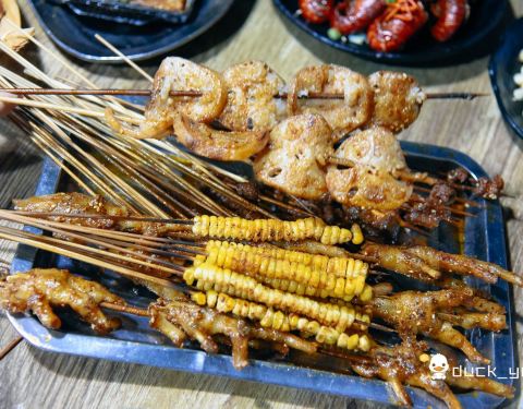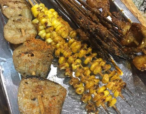 鸡爪软糯入味 。凉虾也有一些在里面,口感丰富。就在路边很好找。也烤得非常软糯 。推荐