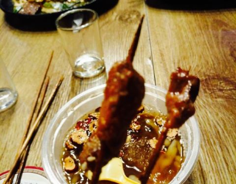 - 尤其推荐蜜汁排骨,带着蜂蜜的甜和孜然的烤香,如果不爱吃辣的这个就很赞。感觉女生吃下一串就半饱了