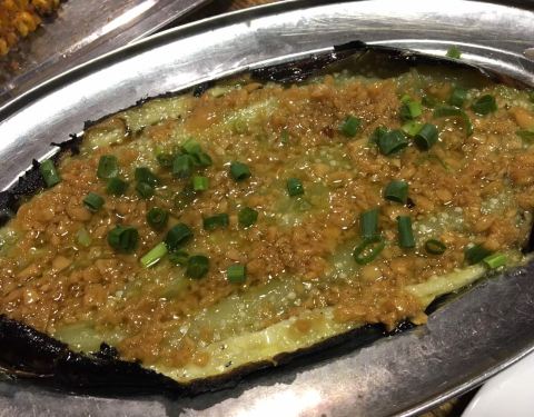 这年头烧烤摊都不让摆了 要撸串得来这种有门面的烧烤了这是老店 环境着实一般 几张随意摆的桌子很拥挤。点菜是在旁边的房间 之后拿号等菜没看推荐随便点的 她说一家烧烤店的味道怎么样就看韭菜烤的好不好 所以点了两份 第一盘的素菜烤的刚刚好 味道也很合适 比在其他地方吃到的是要好点 糯米藕的口感很舒服 玉米就一般了 也就是看个新鲜 不吃生蚝的 她也给点了 勉为其难的尝了一下 基本上就是蒜蓉味 他家的蒜蓉似乎是预先处理过的?从后面的茄子里就可以吃出来 脑花不入味总体的味道高于一般的烧烤 常规的菜品也不贵 可以来吃 听说新店的环境要好点