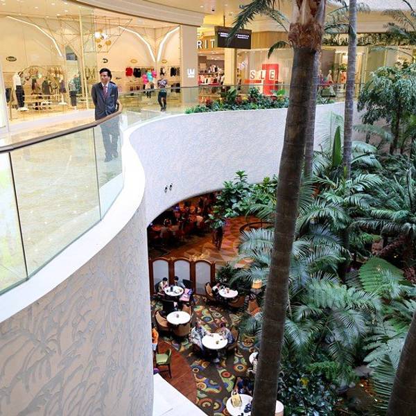 伦敦人购物中心汇聚超过150间商店,以自然采光为设计重点,加上楼高三层潺潺流水的瀑布景致及峻峭的岩石…
