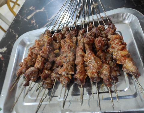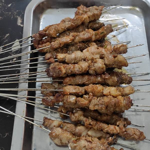 疫情缓和后第一次堂食,必须认真吃一顿。 晚上单位同事一起加班,一群健康的人在点赛百味,单位的小美女已经点好了全麦不加酱不要腌制菜只要新鲜菜的鸡胸肉三明治,听说我要出门吃小串,果断取消订单,既然如此,必须认真安排一家店啊,毕竟爱与美人不可辜负啊。 这是我吃了很多年的一家小店,虽然店面不大,但是收拾的非常干净,尤其是近些年来,身边的竞争者一个个离开,只有他风云依旧,难得。 位置就在东山夜市的边上,门口是没有停车位的,想停车的话就要停到他后边的小区里边,还是有一些车位的,像我这样晚上来的也可以停在大路边,白天是不行的,一是堵路,二是门口是公交车站,不太好停。 店里环境干净整洁,这么多年过去了,越做越大,二楼居然还有包间了。 从服务员到老板都很热情友善,就餐体验很好。 四个人,因为赶时间,只点了二十个牛肉串二十个羊肉串,腌制的嘎嘣虾虾爬子之类的都没点,留点儿念想下回再来。 牛羊肉串都是提前腌制好的,味道绝了。 这么多天吃食堂吃的,对烧烤和火锅的思念深入骨髓,这么一顿夜宵下来,简直是太过瘾了! 爽!