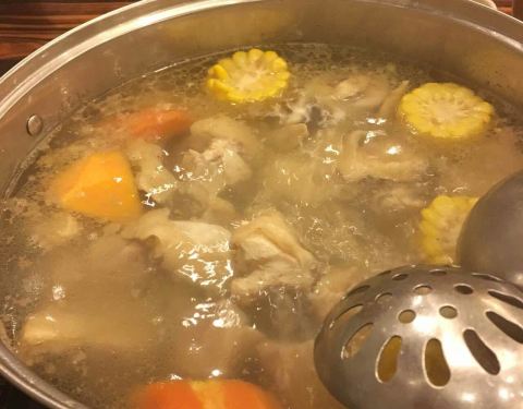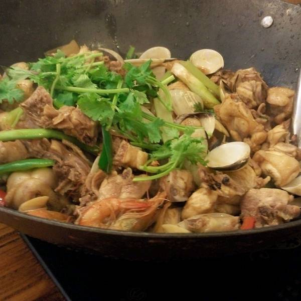 味道是不错的,环境也是比较干净,一锅鸡里面有虾,白贝,足够4个人吃。