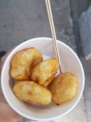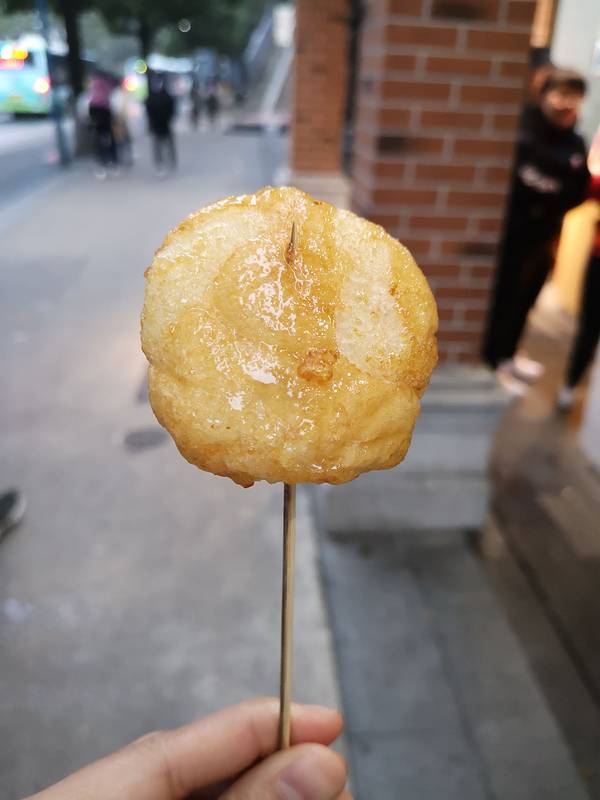在大学城上了四年学,最后一年才吃过这个,居然觉得超级好吃。怪不得每次都有好多人去排队。五块钱五个,而且也比较大,所以很划得来。糖分很足,而且不容易上火。因为是冰糖。外面炸的很脆,但是里面非常的软,...