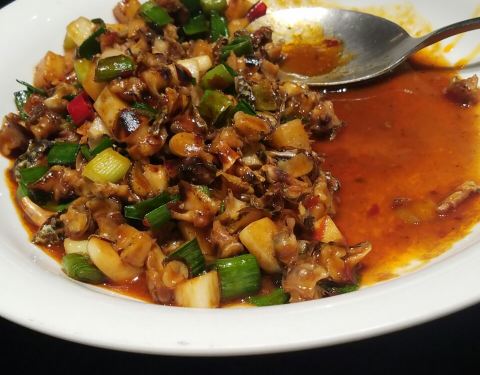金融街洲际酒店B1,吃饭记得拿地下停车场3小时停车券。提前2天订的包间,进门就看到招牌菜黑猪肉仔排扣笋干,每次必点,配米饭最好吃。提前预留的响螺煲汤。辣炒花螺都处理好,不用自己挑很方便。
