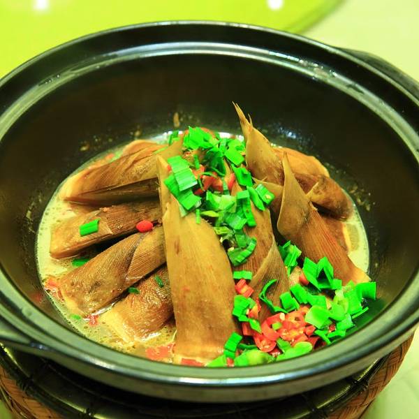 妙香鱼排,我的最爱,好好吃。千岛河虾,口感鲜嫩、虾肉有弹性~。鲜竹笋,带皮一起炖的还是头第一次见到哈
