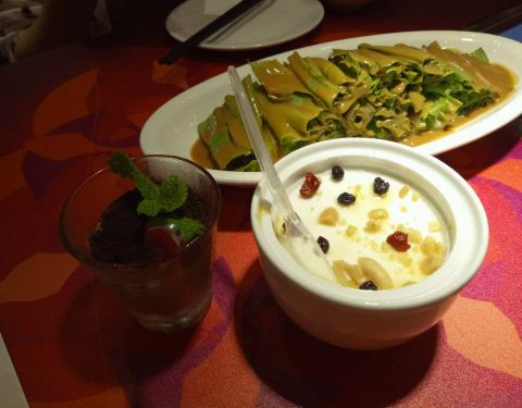 味道不错,然后尤其是玉米汁特别好喝哦,酸辣蕨根粉特别爽口。总之,开心,只不过就是呃,人太多,有很多菜都没有了而已。