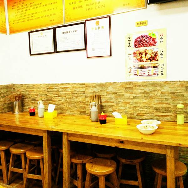 为了满足食客的需求,在店外搭建露天雨棚下又摆放了一排快餐桌椅。这也是我第一次品尝长生面。还有一股味道