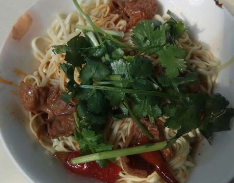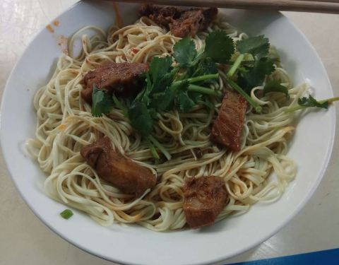 这个面挺有特色的,汤底里有一种浓浓的药材味道,煮出来的面配上各种浇头味道很奇特,从缓过来在北方没有吃过,我们经常去这里吃。 - 吃了三种面,觉得干拌牛肉面味道最好。环境不太好的苍蝇馆子,不过味道还行,但算不得惊艳