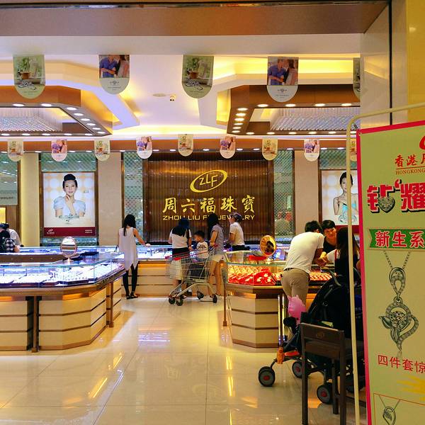 简介:一家专业从事珠宝首饰的设计、生产、经营的香港企业,这些年在内地形成了较为完善的销售网络,门店遍及大中型城市。地理位置和交通:我们去的这一家分店位于近郊花都区花东市场星福百货1楼。由于就在市区内,因此周围的交通还是非常方便的,可以乘坐711路或708路公交车前往,到“花东市场站”下车,再步行上5-8分钟即可。体验:1、他家的珠宝首饰主要以金银饰品为主,款式多为传统纹样,特别适合婚庆使用,但如果是休闲或收藏,就一般般了,因为黄金的纯色似乎不算特别高。至于翡翠或玉石类,感觉水色等稍微有些差。2、价格方面,低廉的价格和不时的优惠活动,可能是周六福珠宝最大的优势之一。因此来这里看的人还是非常多的。3、服务方面,里面的服务员很热情,一进门就会询问您的需要并做出推荐。但感觉专业知识稍微有些欠缺。4、环境方面,灯光和空调等设施完善,购物环境良好,座椅也多。