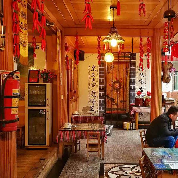 这家本地菜馆是在某评网站看到的好评率极高的店,可能是心里落差的原因,个人认为误差极大,环境上可以用古色古香来形容,木质结构青砖白瓦挂腊肉,但除了包厢外,目光所及之处略显杂乱,不像我去过的那几家有趣本地菜馆,虽然也不是整洁的一尘不染,但给人的感觉就是进到院子里就很温馨舒适,愿意久留。