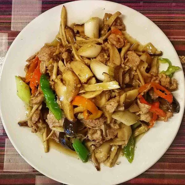 杂菇炒肉(杂菌炒肉),清淡,不能理解的是假若食材欠佳,可以用重味来掩盖,但是他家并没有,于是吃了两口肉不香菌不香,毫无口感;