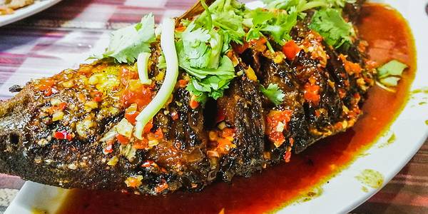 脆皮酸辣鱼,颜色欠妥,黑色太重,酸辣口感较淡,鱼的尺寸可以接受,但肉薄像是放了很久的,且鱼香味几乎全无;