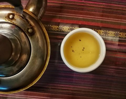 沾水是辣椒面加香菜,只有辣味,没有香味。茶水太平民化。