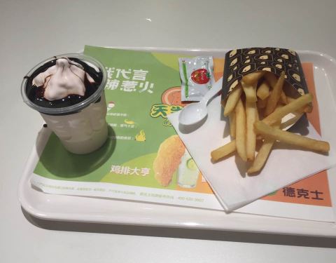 感觉德克士的薯条,炸得松软可口,恰到好处,比肯德基的强多了。炸鸡也嫩而多汁,比肯德基强。