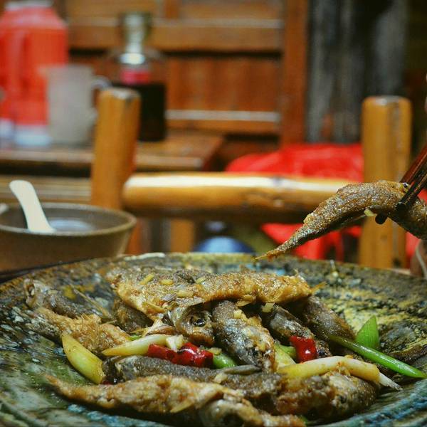 景德镇的第二餐在三宝陶艺村解决掉。来了陶艺村,就不得不尝一下这里的“世外陶源”,听说有不少食客慕名而来,只为在这里吃上一顿珍馐。餐厅以古朴的乡村风格与陶艺相结合,茶杯茶具都是自己烧制,所以看着都不配套。一边品茗一边听着古筝曲,觉得自己一口一口吃下的不是饭菜,而是流传千年的中国艺术。 茄子煲,菜色完美,不过不喜欢吃茄子的我一口没动;雪菜春笋,景德镇和婺源这边非常爱吃春笋以及雪菜,清爽的菜品配上当地的辣椒,也是一道让人赞不绝口的佳品;红烧鲑鱼,最爱吃鱼的我做到了我最爱吃的红烧鱼旁边,一餐基本上都在埋头苦吃鲑鱼,新鲜红椒的香味令人欲罢不能,实在好吃,如果您要来世外陶源的话一定记得要点这份菜;粉蒸肉,不辣,但是过于油腻了,不是很推荐;饺子粑,这个是景德镇的特产,出了景德镇就吃不到了,外皮是用粑做成,粘粘的。不过最让我们惊喜的是内部的馅,竟然是辣味的!每口辣椒都要直接吞下,使得辣味增强了许多,很值得尝试哦