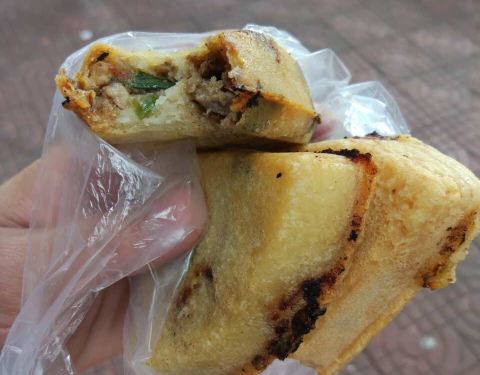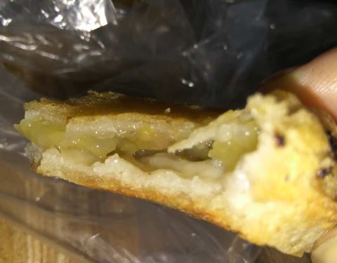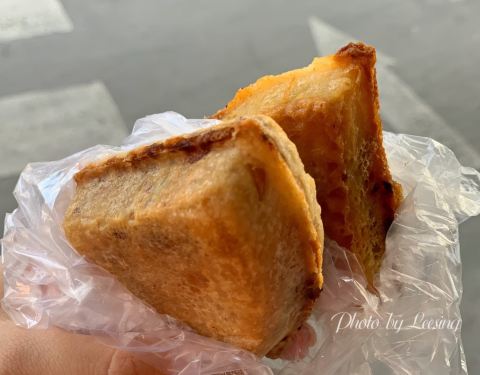 漳州觅食第三站,晓文三角饼,离中山公园西门不远,直走在红绿灯路口就可以看见,人排队最多的那家就是!老板非常会做生意,买了没有堂食的地方,只有打包带走,刚好走累了,就到公园旁边的董小姐饮吧坐下来品尝!先尝试了菠萝味和牛肉味,果然肉食动物还是比较喜欢牛肉味的呀!多买了一些,准备带回家吃!保质期三天,微波炉加热即可!