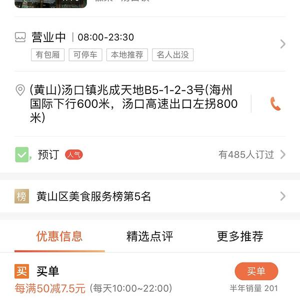 ·徽州美食距景区门口1公里左右,是一家三十年的老店。 ·主营徽菜,臭鳜鱼、一品锅等都做的很地道,而且价格公道。 ·老板服务很好,非常热情,不过饭点人多,可能会排队。