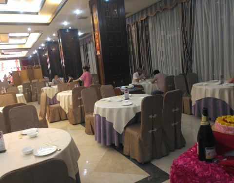 佛山市顺德区容桂镇,是比较高大上的一家海酒家,我们一家三个人吃了三盅辽参燕窝、白灼大对虾、密制烧鹅、介兰、清蒸老虎斑2斤,才7百。比广州市实惠很多。