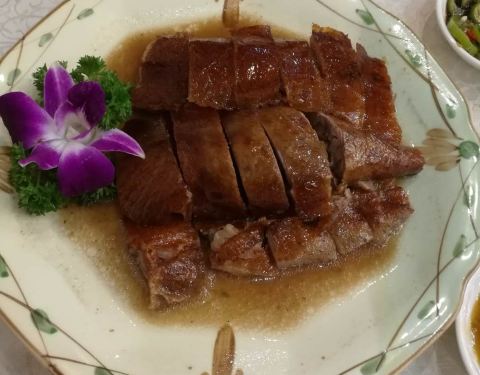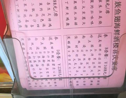 - 是比较高大上的一家海酒家,我们一家三个人吃了三盅辽参燕窝、白灼大对虾、密制烧鹅、介兰、清蒸老虎斑2斤