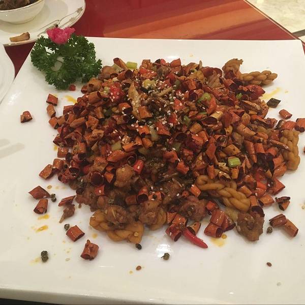 辣子鸡丁,盘子真的是非常非常的大,里面脆辣脆辣的麻花比骨头多余肉的鸡丁要好吃的多