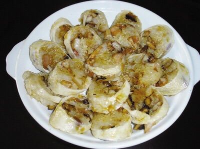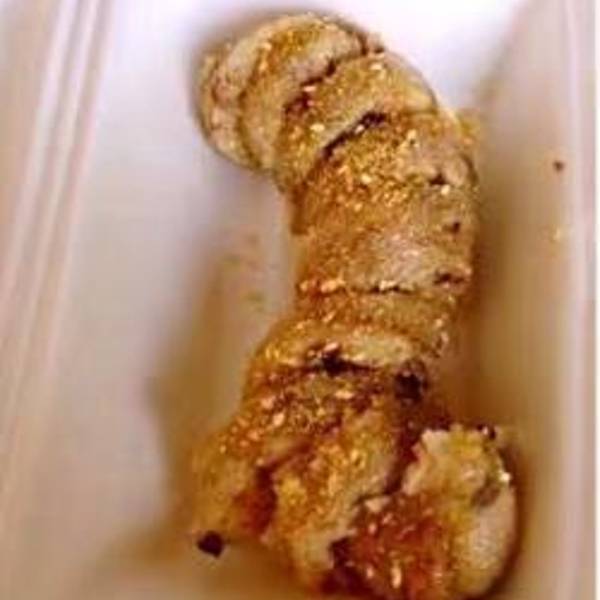 潮州很有特色的一种小吃,就是把糯米塞在一条薄薄的肠衣里面,像灌腊肠一样,不过里面是糯米。