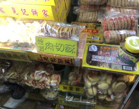...那样,手信都是饼类的多,各种口味的杏仁饼,汇率喝人仔1:1,不划算,出品还是不错的,买的人很多