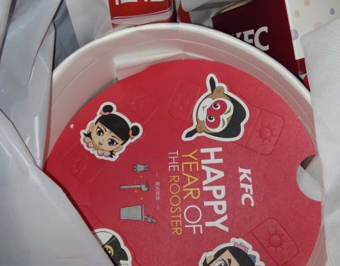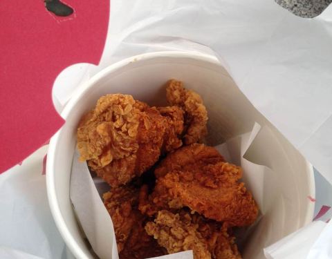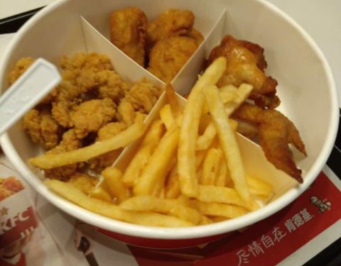 第一次吃这圣诞桶 鸡块好大 份量很足 真心点赞