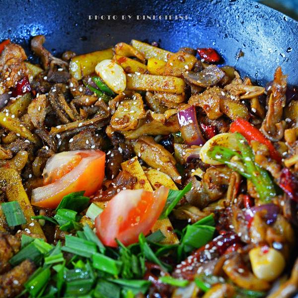 东北有乱炖,湘西有三下锅,第一次吃这种炒出来的“乱炖”,挺惊艳的,老爸很喜欢吃这种有味道的东西,最后把其他的菜都倒进去,混着汤底吃掉了。