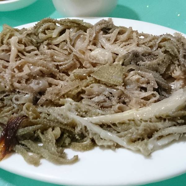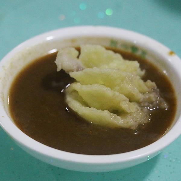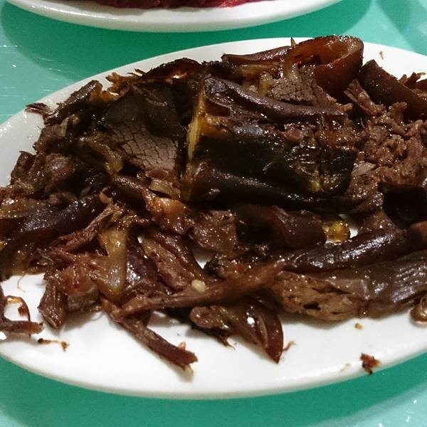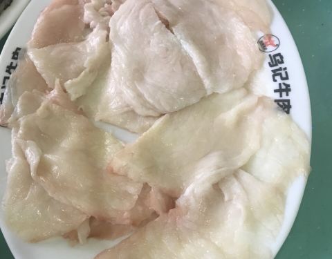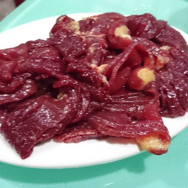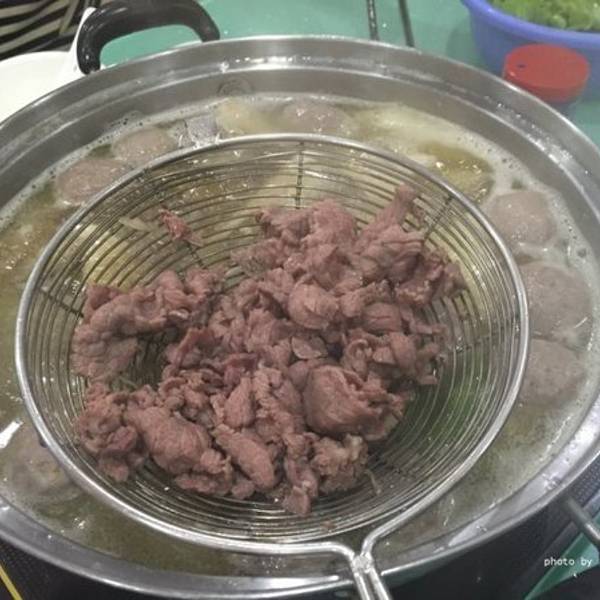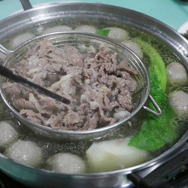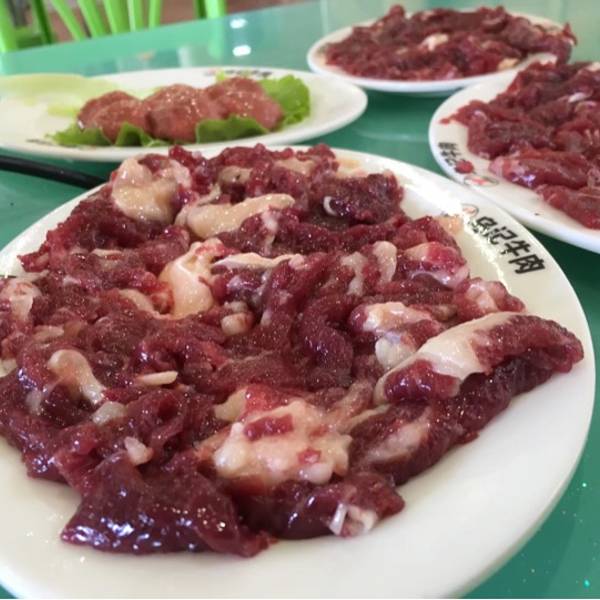 环境不敢恭维,油乎乎的桌面和满地的纸巾,而且店很大,看着热腾腾的锅子还只有吹风扇,可是吃上肉之后,让环境什么的见鬼去吧!牛肉怎么会这么好吃!爽脆清甜!如果是让我自己选,我肯定是不会进来的,可是当地人可是强推此店,而且都是回头几十次的客,咱们外地人吃完了还想吃!先来一盘卤好的肉,每天限量供应,非常入味。是下酒的好菜!接下来,是一盘嘎嘣脆的牛百叶,看着颜色绝对和平日看到惨白惨白的比起来健康多了,好歹证明了它不是用化学药漂过的哈!再来一盘生丸,这都是店家现打出来的,放到锅里烫,不一会儿就熟了,口感Q弹,牛肉味浓郁!好吃到想哭啊!!这种带一点点油的肉肉非常好吃,本来以为油的部分会腻,可是超乎想象,就是这块油让肉肉变得更加香喷喷了!出锅了,有没有很诱人?激动的我拍照都手抖了。。。其实我觉得最不可思议的是这盘牛油,纯!牛!油!开始看到的时候不禁在内心发出了EW~的感叹,可是在友人的鼓动下,尝了一下,一发不可收拾!是脆的,而且居然一点都不腻?!推荐大家可以大胆尝试,不过不要吃太多,容易拉肚哈哈哈~~不要问我为什么知道!