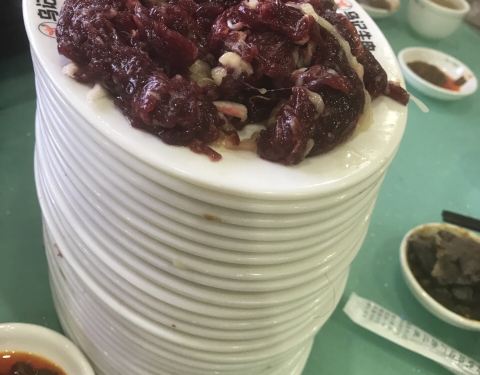 来汕头不吃顿牛肉火锅,你怎好意思说自己来过汕头?!汕头牛肉火锅店之多,恐怕十个手指头加十个脚趾头都数不过,谁家好吃?其实没有太明确的定论,关键是看自己的口味。这家乌记,当地人吃了都说好吃。据说屠宰场就在隔壁,所以又冠以鲜活两字,我们纯粹是因为顺路。
