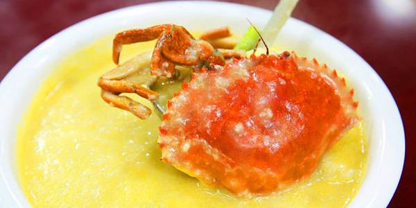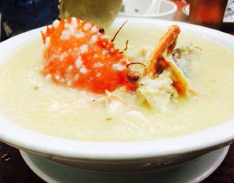 粥很好甜很香 米很细腻 小份里有完整一只蟹 蟹新鲜 肉鲜甜 小份建议3-4人食 还可以点其它小吃 店铺不大 店里贴满各种采访报道的报纸 确确实实是明星老字号了 。