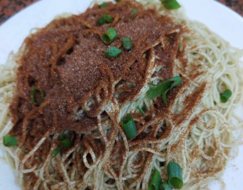 直接点了招牌虾子捞面加云吞,满满的竹笙虾子铺在面上,虾子粒粒饱满,直接食用虾子一股海的味道,偏咸,搅拌开来,面条很Q弹。