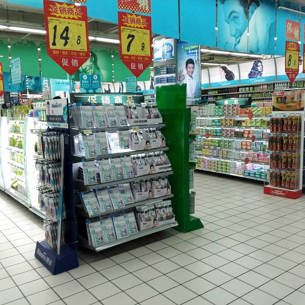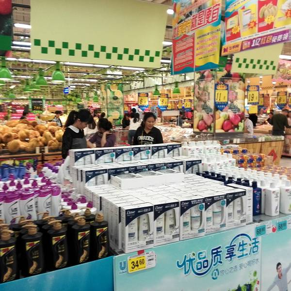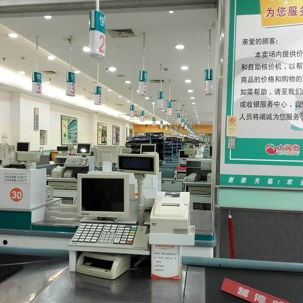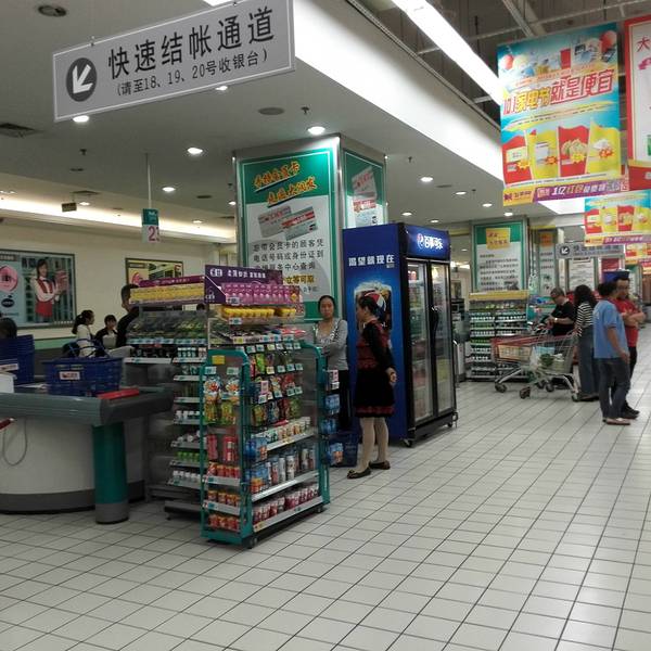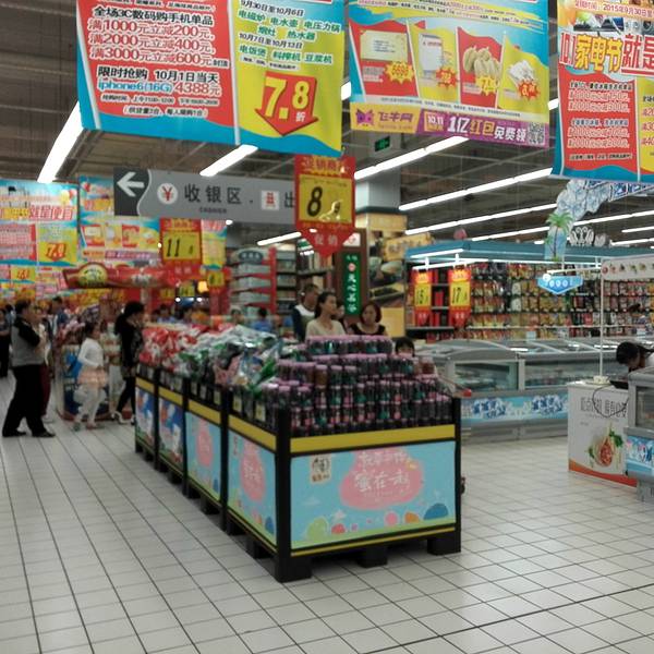 在南充顺庆区,有3家大型超市分别是家乐福,沃尔玛,大润发,其中,大润发拥有两家分店。这家分店,楼上的停车场在三层四层,负一楼是大型超市,一楼和二楼集中了众多大品牌,是综合购物的商城。它邻近顺庆府1227,有南门坝购物商圈,旁边汇聚了很多家的火锅,自助餐,高档餐饮,美食店。交通很便利,位于十字路口,有8路,37路,12路公交车。附近的人流量很大,每天遛弯购物的人很多。附近的很多住宅户都是在这里来集中购物。最受欢迎的还是它的超市。整个负一楼,面积很大,汇聚了众多的商品,有服装,厨具,家居,家电,零食,冷冻,蔬菜,肉,等等。一个陈列架,琳琅满目的商品,每样商品的牌子很多,顾客有很多的挑选的余地。每个陈列架的间隔很大,能同时容纳两辆小车的通行,不拥挤。商场经常搞活动和特价,主要针对的饮料和蔬菜水果类,价格都很便宜。他们家的店员很多,每个货架,顾客每拿走几件,店员都能整理货架,及时的再补充第一排的商品。服务态度很好,称重的阿姨能很快的辨别出商品的优劣,对特价商品也能快速划价。有顾客犹豫不决的时候,总有店员上前来,将性价比高的产品介绍给顾客。收银台共有52个窗口,很能快速的划分人流,但低峰期只有10个左右开放。这个超市的综合性价比,还是挺划算的,因为经常搞促销活动和降价。另外,它还配有免费的超市公交车,方便各小区的人来购物,不收费哦。大润发主要全部是正品,质量放心,安心。
