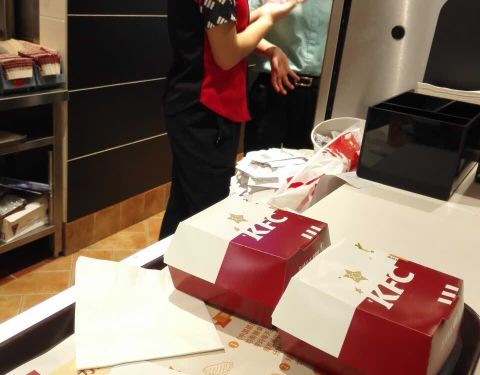 昨天才来的,今天又来了,路过就进来坐坐,周末生意爆好,得等位,就是一到KFC里面手机信号就不好!奇怪!