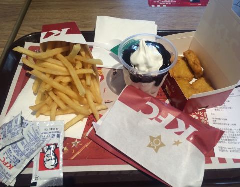 ...的我,一进来又忍不住,点了一份小吃拼盘,依然还是熟悉的味道,依然还是要赞肯德基的番茄酱,最好吃