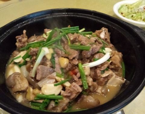 这里距离尚尔酒店很近,离苏仙岭也是20分钟路程左右。店子较大,但人也很好,要等位,等位时还提供零食和水。要了羊肉煲、豆腐和手撕包菜,份量挺足的,两大两小四个人也吃不完。味道不错,偏辣,点菜时要求羊肉免辣的,但上菜时,羊肉没放辣椒还是有点辣。