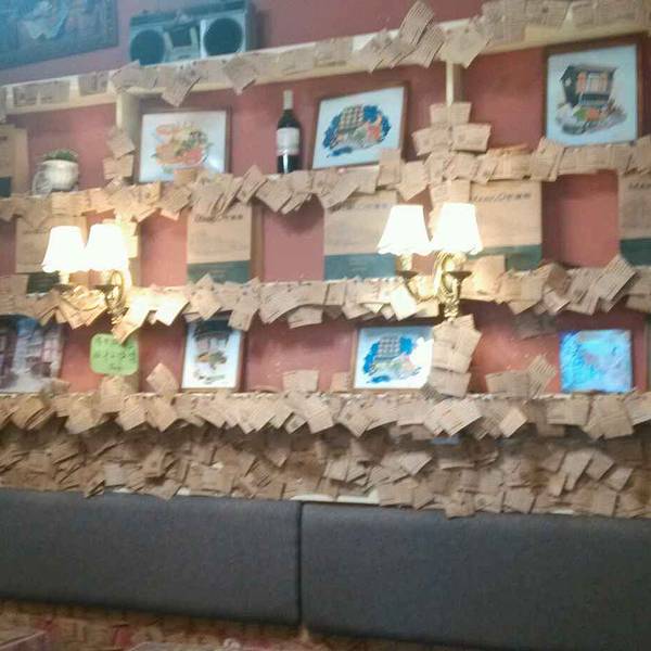 一家有文艺范的果汁店,每张桌子下都是杯套 上面是手工微博 记录每一个顾客当时的心情点滴 果汁口感不错 2015-06-27 01:21zvlh5752