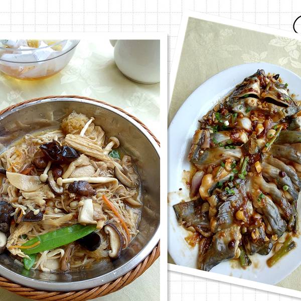 就在鼎湖山景区门口再前行几十米就到了。这间店铺可以标榜着有20年历史的老字号。 进来一楼,7号这天已经满座了,所以只能坐二楼,环境都算不错,干净。食物出品比较价钱实惠,好味道,服务人员的工作态度很友善。