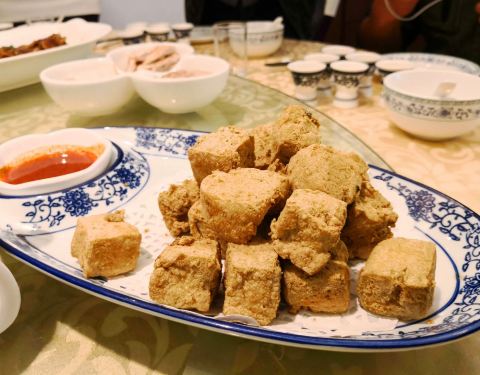 - 黄酒配着绍兴特色的醉鱼干,臭豆腐,茴香豆,梅干菜扣肉,才是最正宗的吃法,很满足的一餐