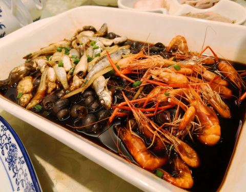 - 黄酒配着绍兴特色的醉鱼干,臭豆腐,茴香豆,梅干菜扣肉,才是最正宗的吃法