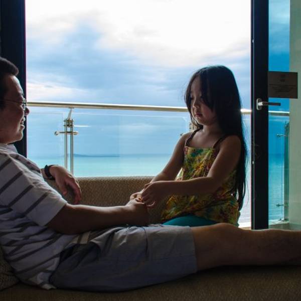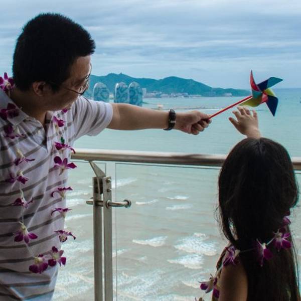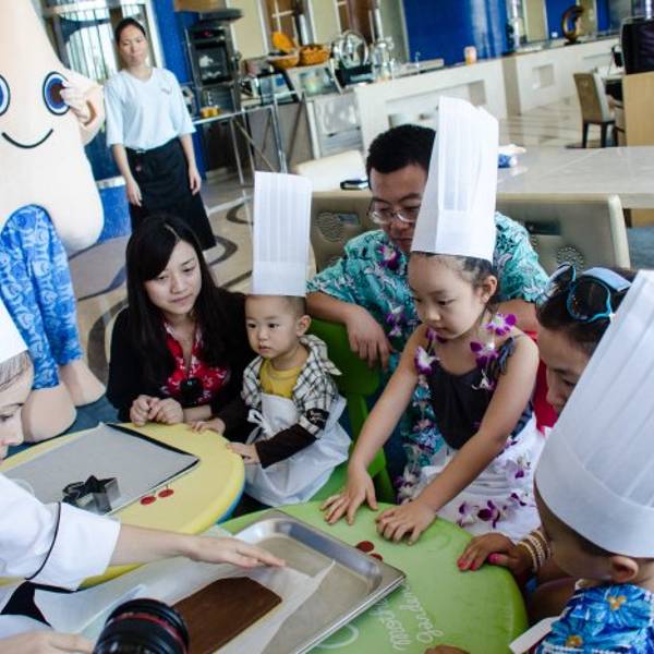 三亚湾的福朋喜来登酒店位于三亚湾海月广场,这里的员工脸上永远带着愉快、友善的微笑,让人一进入酒店就能嗅到轻松愉悦的度假味道,心情大好。更让人感动的是,进入房间时,我们赫然看到了前一天参加活动时的全家照片已经镶好镜框摆在床头了,这让我们兴奋了好一阵子。福朋喜来登酒店员工热情、真诚又如此细致、周到的服务绝对俘获了我们全家的心。 图注:一进门就受到海星宝宝的热情欢迎,小月好开心午餐前,酒店特意安排了小宝宝们的烘焙课堂,由美丽的西班牙大厨手把手教大家烘焙Cookies,美食是小月最热爱的,这样和大厨学艺的机会岂能放过。最后两个弟弟都不知道跑哪去了,只有小月一个人坐着和美女大厨边聊边做,欢声笑语不断,教学过程很欢乐,不知道是否得到了烘焙秘笈。小月还突发奇想利用剩下的一点材料照着Louis叔叔和美女厨师的样子分别作了两个人像饼干,别说,还真的像模像样呢。我们入住的套房内软硬件设施无可挑剔,2米大床超级舒适,酒店贴心地设置了ipod立体声播放系统,还放摆着各种热带水果,沐浴用品全部奢侈地使用欧舒丹套系,没用完的全部被我贪心地打包带走了。更值得一提的是我们的房间就面向着超美的三亚湾无敌海景,不远处的凤凰岛也成了窗前的一道美丽景观,海鸥不时在窗外翱翔。打开阳台大门,播放着轻柔舒缓的音乐,享受着眼前的无敌美景、清凉海风和美味的热带水果,难得的假期里小月和爸爸在沙发上嬉戏,场面温馨、美好。小月手中拿的风车是酒店的louis叔叔送的,他说:“这个风车是我们酒店的标志,它代表着简单的快乐”。是啊,一个舒适的酒店、一个风车、一个能陪在孩子身边的日子、一个有海的假期,就这样简简单单的,就很快乐。图注:晚间,一家人在酒店对面的沙滩上散步、谈心、赏月,感叹人生美好,知足常乐。在福朋喜来登酒店唯一的遗憾是时间太短,没来得及去29层的海景酒廊里把酒临风观赏无敌夜景了,只好留待下次。