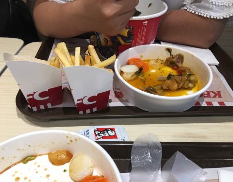 每一次来肯德基必须吃大鸡腿饭和薯条。店员服务态度也好。给五星好评。